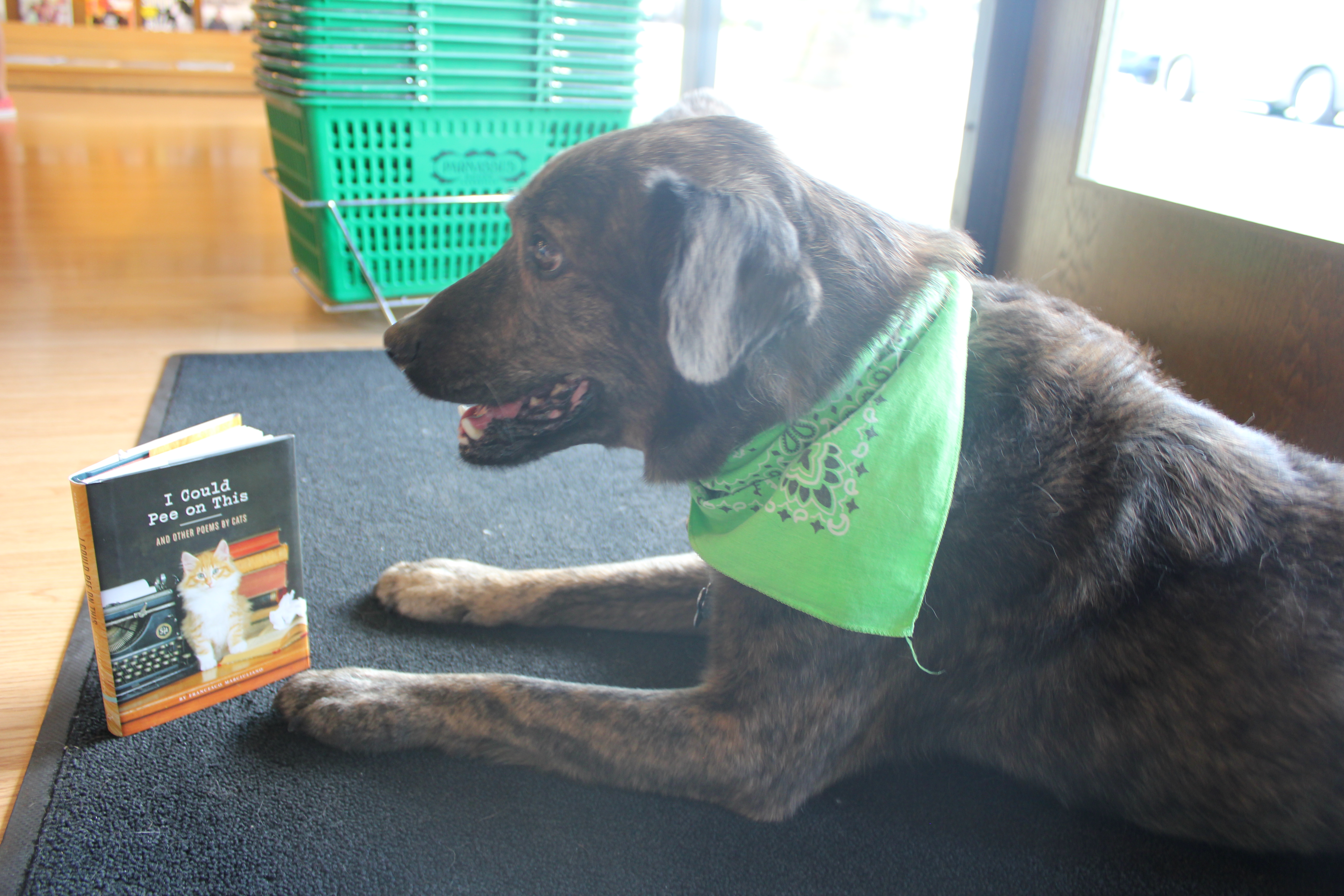 This is Cat. If you’ve placed a book order or emailed us to ask about a book recently, you’ve probably talked to her. She knows a LOT about books and shipping and boxes and packing peanuts, which, just so you know, are not at all like regular peanuts. Cat is not a cat. She is a person named Cat. And I’m a dog named Bear. Not everything is for me to understand.
