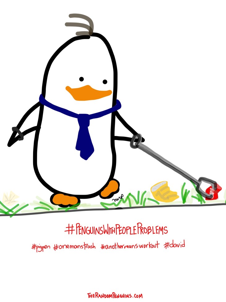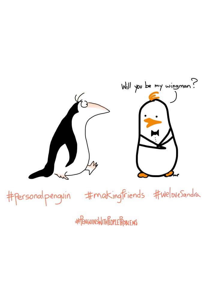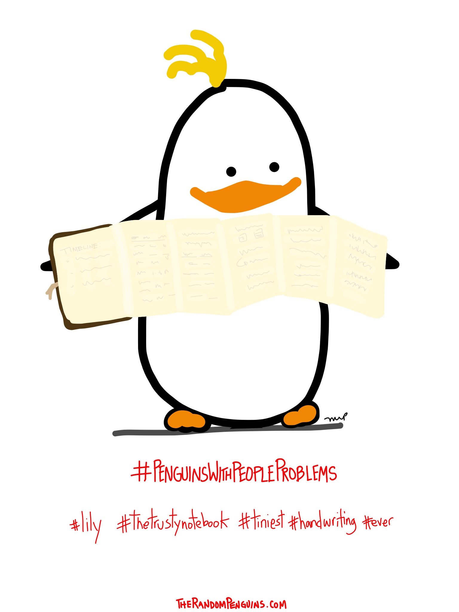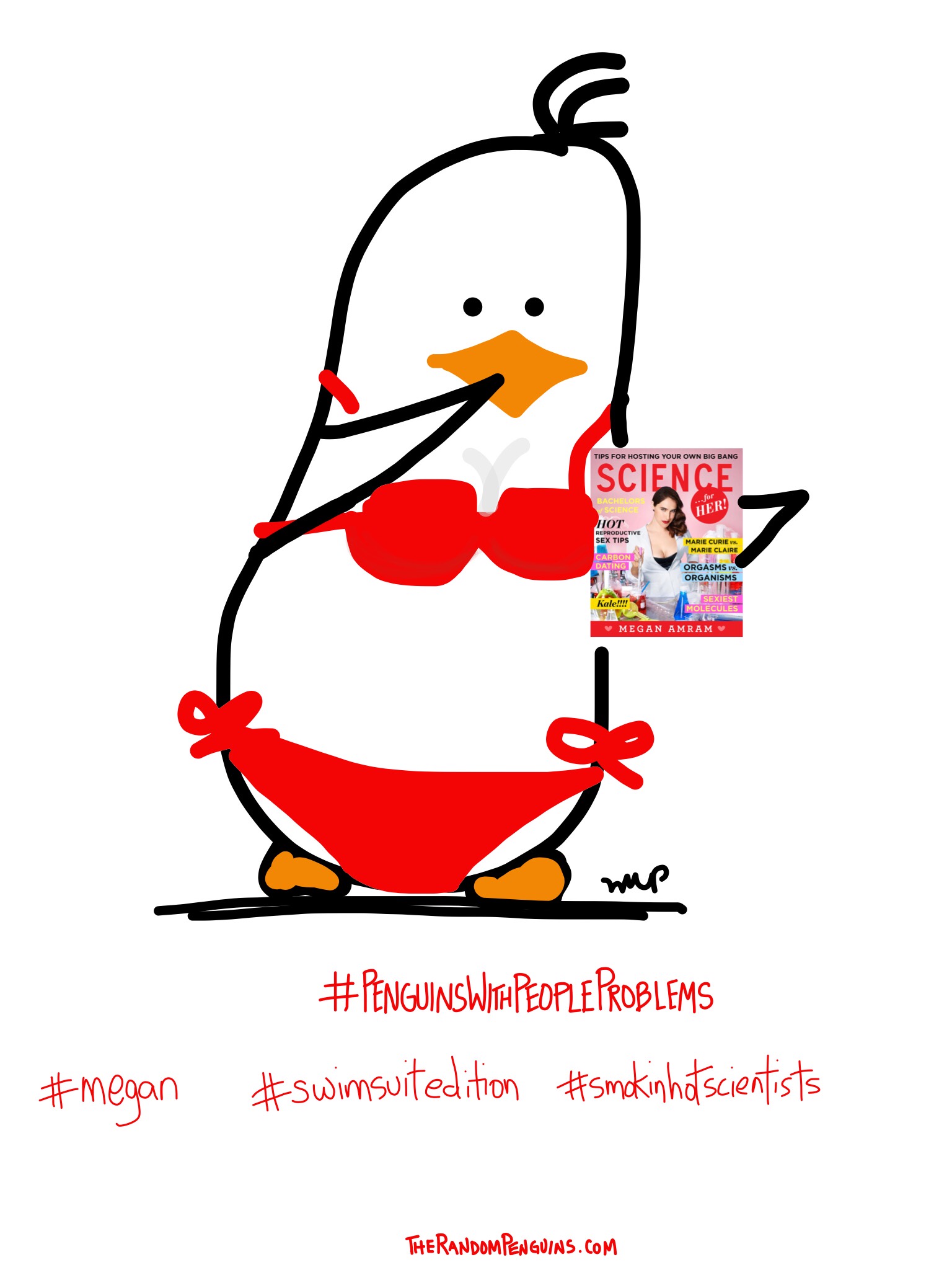 The quirky little book grew out of Philpott’s Tumblr site, “The Random Penguins,” which she started after the merger of Penguin Books and Random House. Stuck on the idea that “Random Penguin” would make a great name for the new company (alas, they went with Penguin Random House), Philpott started doodling penguins doing random things like going to work, dining out, putting on makeup — things penguins don’t do, people do. Fittingly, Penguin Random House got wind of the project, adored it, and has turned it into an illustrated book for grownups (think The Far Side or The Oatmeal).
