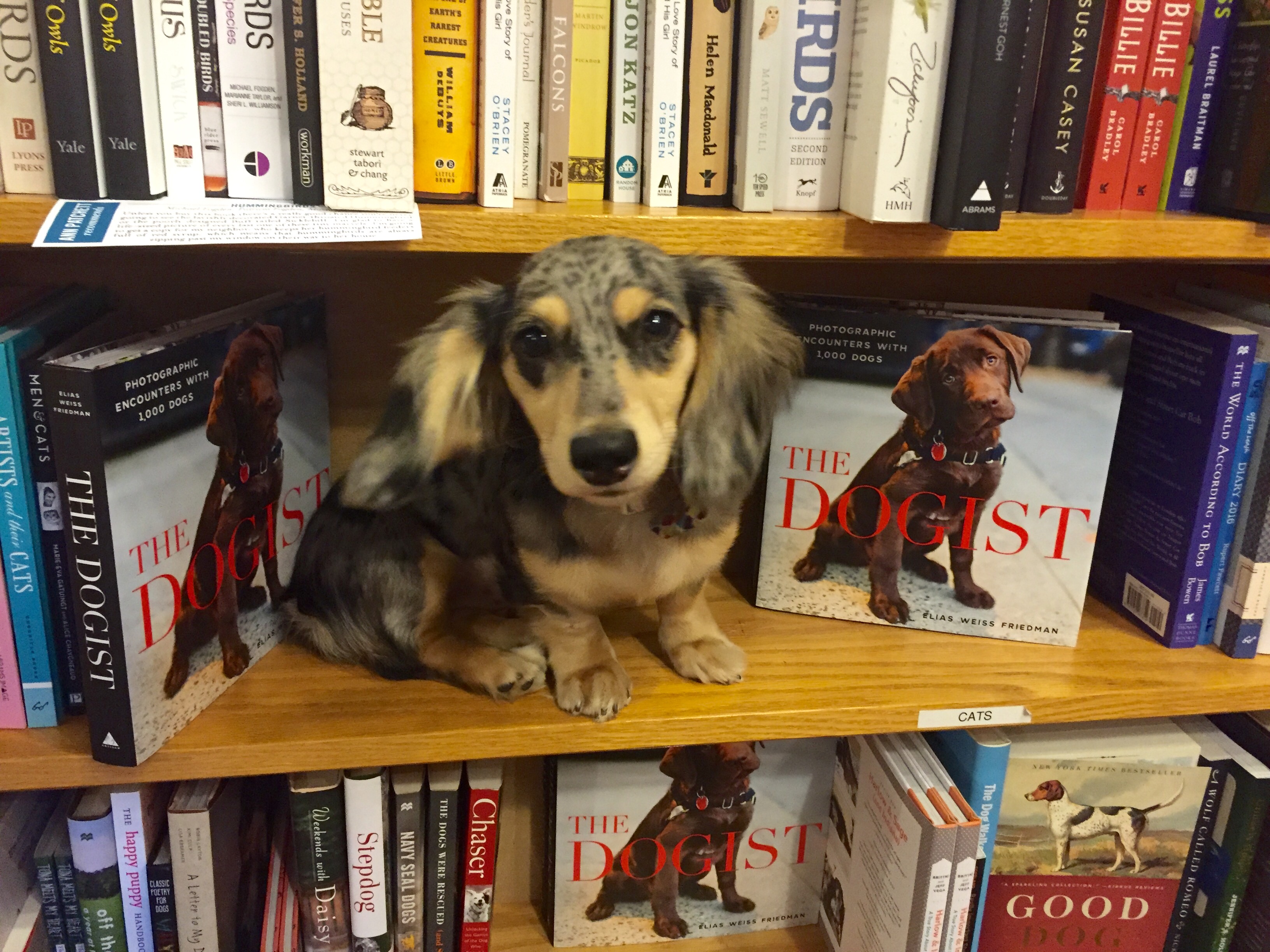 We, the shop dogs of Parnassus Books, received an assignment from our people last week: to “read” (or sample with any of our other senses) a new book called The Dogist. You may have read about it. Based in New York City, photographer Elias Weiss Friedman snaps photos of dogs on walks, out to play, and at rest for his popular Instagram account of the same name. Now those dogs have their own book, full of 1,000 friendly faces like these: