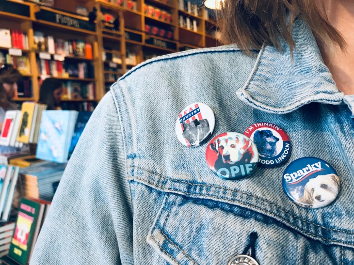 The elder statesman of the bookstore, Bear is the strong silent type. His leadership style is a mix of quiet gravity, patient forbearance, and lying down to rest often. So relatable! His policies may not always excite the base; he does wear a doggy diaper, after all. But you won’t meet a dog more loyal to his owner – he’s rarely far from Sissy’s side — and that means he’ll be loyal to you as well, dear voter.
