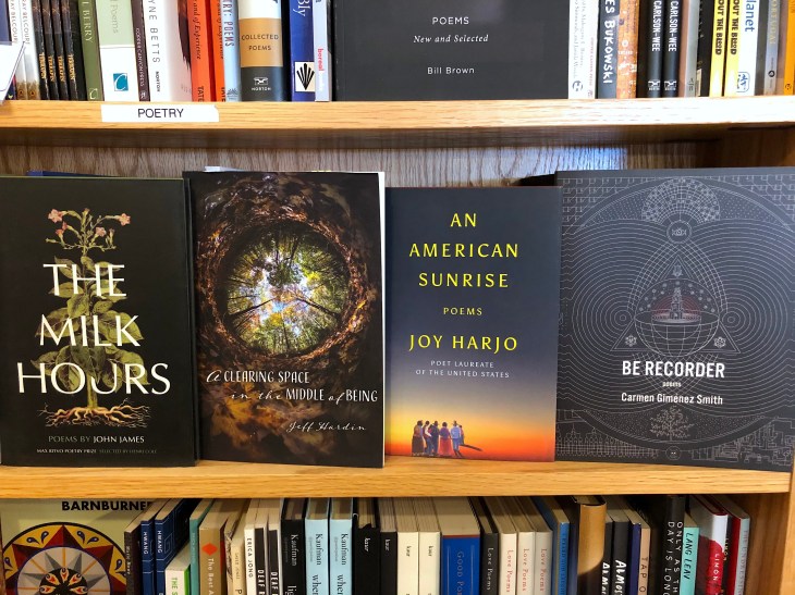 The other day, someone came into the bookstore looking for a collection of poetry to give as a gift for her daughter, who she felt might benefit from something that, if not spiritual exactly, really wrestled with matters of the soul in a hopeful sort of way. The mother mentioned that her own personal go-to was Mary Oliver, so that was our jumping-off point. I pulled several books, and the mother took a seat and started going through them. The one she left with that day was An American Sunrise by Joy Harjo. Harjo is the United States Poet Laureate, and the first Native American to hold that post, but more than that, a writer of tremendous empathy and attention. I return again and again to these lines from her poem “The Fight”: “I grow tired of the heartache / Of every small and large war / Passed from generation / To generation. / But it is not in me to give up. / I was taught to give honor to the house of the warriors / Which cannot exist without the house of the peacemakers.” —Steve